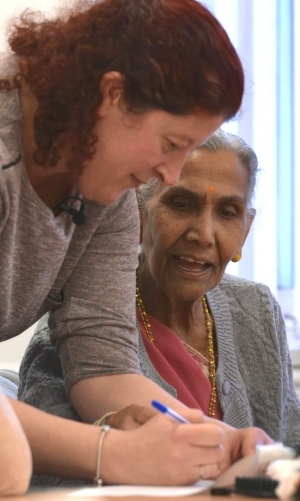 Gujarati is the sixth most widely spoken language in India, with approximately 60 million speakers worldwide and more than 200,000 speakers living in the UK. For the eight Gujarati-speaking women who attend Age UK Tameside’s MCST group, having Anamika – a group member’s daughter – volunteer to translate the session’s exercises into their first language means that they can fully access the service and participate in the day’s activities.