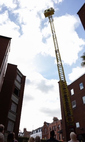 Participants on the tour got to hear directly from Soho’s firefighters about the biggest challenges of the job, had the opportunity to try on uniforms, and even experienced the dizzying heights of going up in a fire engine’s aerial ladder.